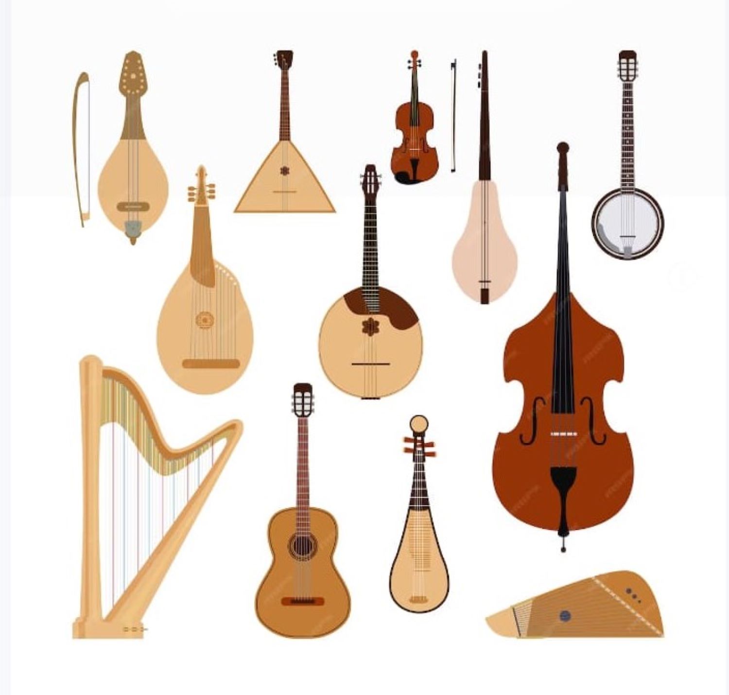 Ejemplos típicos son el violín, la guitarra y el arpa.