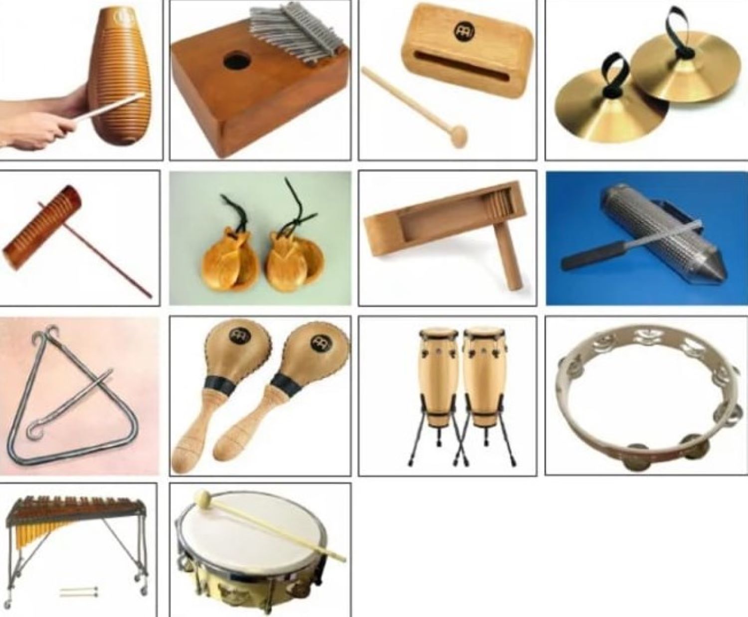 El triángulo su nombre es más que elocuente-está conformado por una varilla metálica con esa forma geométrica y tiene en uno de sus ángulos un asa utilizada para sostenerlo, mientras con un trozo de la misma varilla, o un clavo, se lo percute.