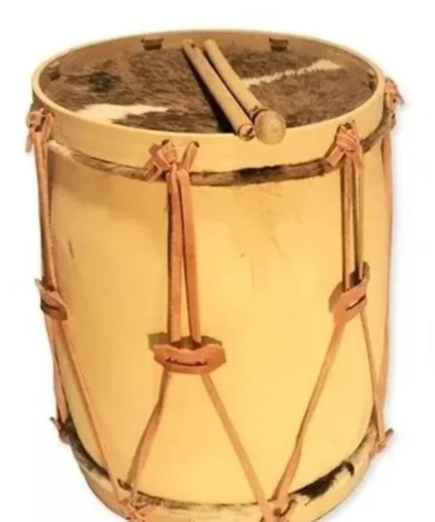 La caja es un tamboril, de forma cilíndrica -aunque se han hallado también rectangulares, con caja de madera de no más de veinte centímetros de alto, con dos parches fijados me-